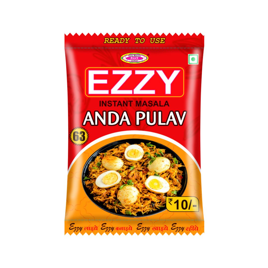 Ezzy Anda Pulav Masala is a ready-to-use spice mix that adds rich flavor to egg pulao. Just cook with rice and boiled eggs—no need for extra spices or salt!