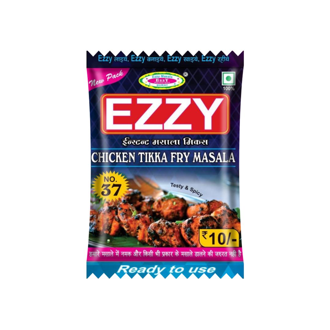 Ezzy Chicken Tikka Fry Masala – 10g (No. 37) – Instant masala mix for juicy, spicy, restaurant-style chicken tikka fry at home. Ready to use, no extra spices needed!