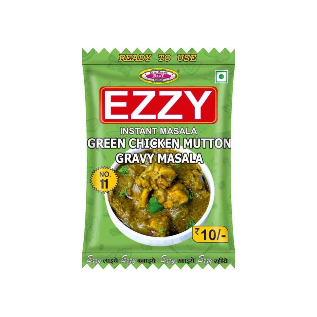 Experience the bold taste of green masala with Ezzy's Instant Green Chicken/Mutton Gravy Masala. This flavorful blend of aromatic herbs and spices is specially crafted to give your chicken or mutton dishes a rich, green gravy that’s both spicy and refreshing. No grinding or mixing – just open, add, and cook!